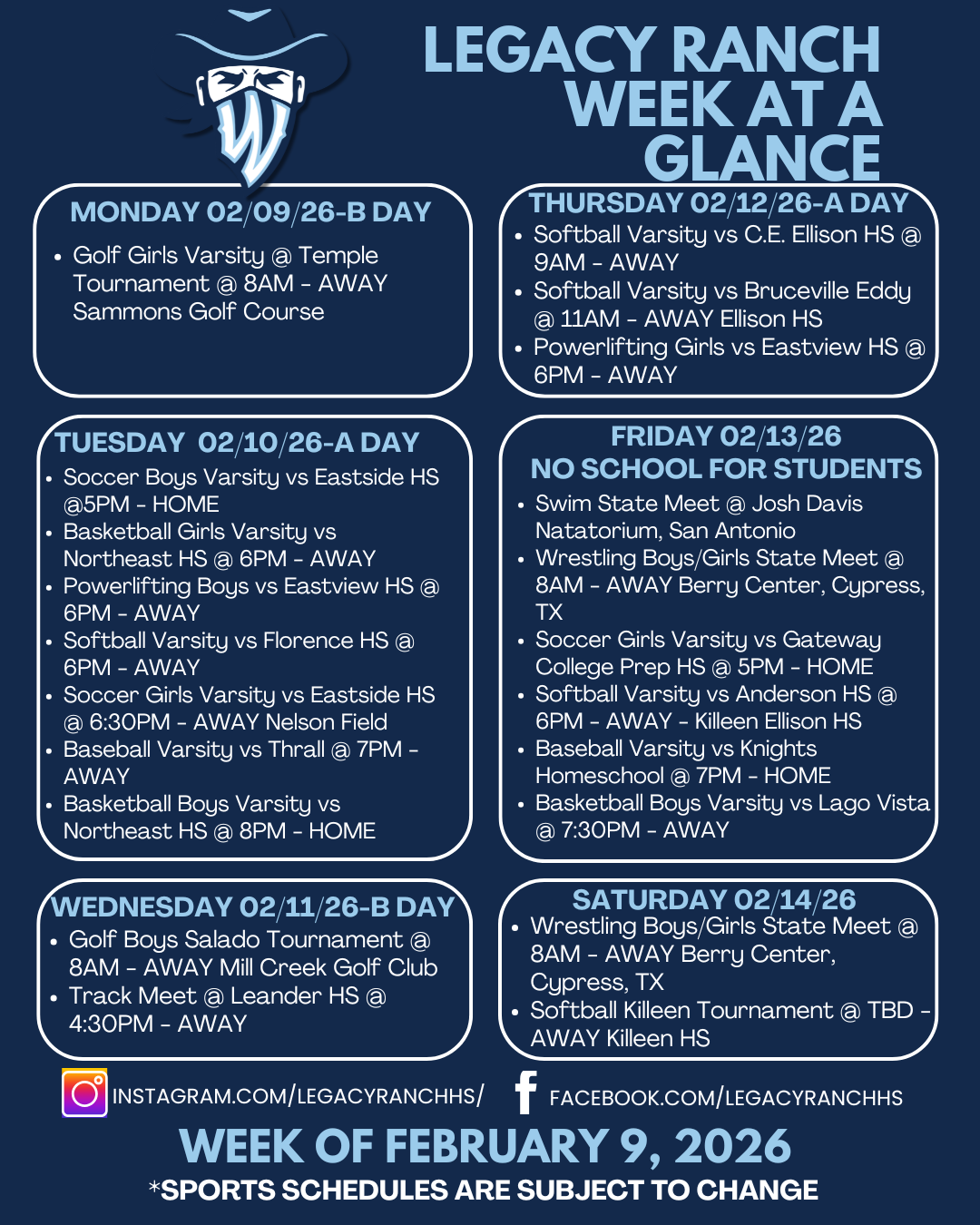 Legacy Ranch Week at a Glance - Week of February 9, 2026