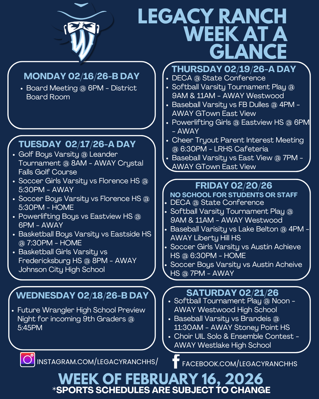 Legacy Ranch Week at a Glance - Week of February 16, 2026